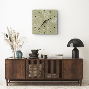 El reloj está vidrio con un espesor de 4mm. La tecnología de fabricación cumple con la clase de seguridad 2B2 según la normativa PN-EN 12600:2004 que garantiza la resistencia al impacto. El reloj de cristal está listo para ser instalado en la pared, tiene un colgador de metal fijado en la parte posterior del reloj y un espaciador de espuma para regular la distancia entre el reloj y la pared. El reloj tiene un mecanismo de flujo silencioso que funciona con una pila de 1,5 V - AA (pila no incluida).