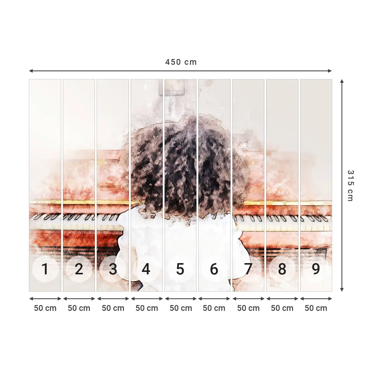 Fotomural Premium Sand - Descubriendo un mundo nuevo - Piano, Música, Músico - 450x315 cm