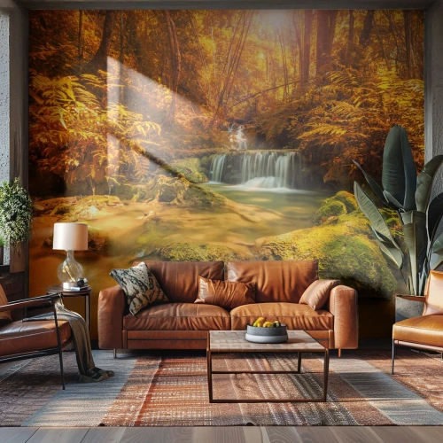 Fotomural Standard Eco - Cascada forestal en oro - Paisaje, Cascada, Tailandia - 200x140 cm