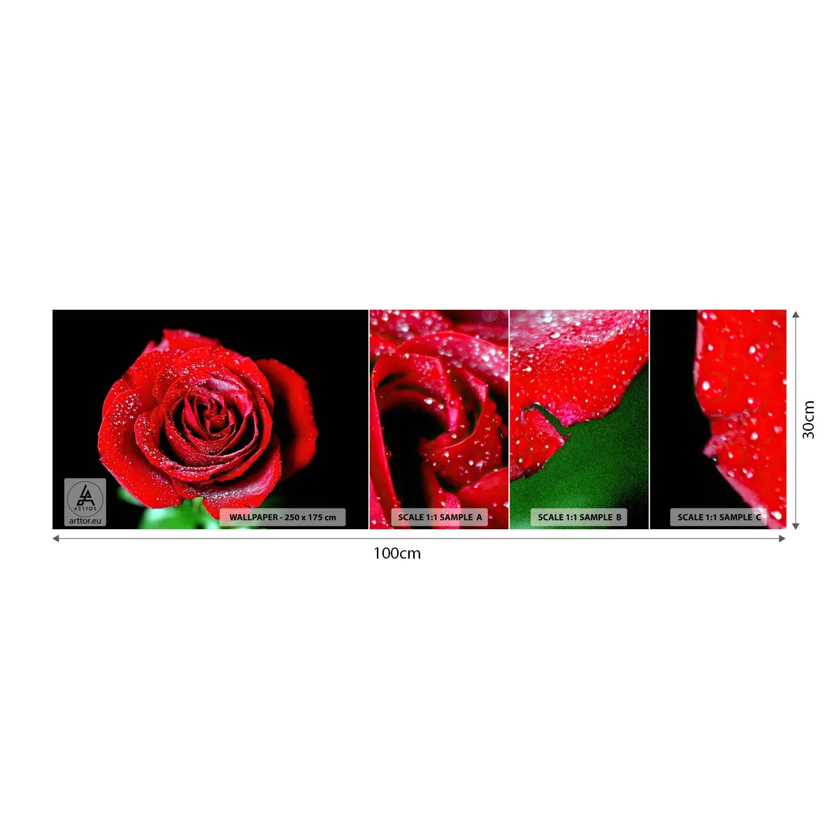 Muestra De Fotomural Standard Eco - Eso es el amor - flores, Rosa roja, Pétalos de rosa - 100x30 cm