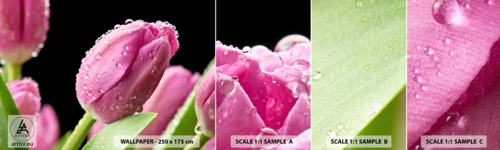 Muestra De Fotomural Standard Eco - Un sueño de lilas en el rocío - flores, tulipanes, Ramo de flores - 100x30 cm