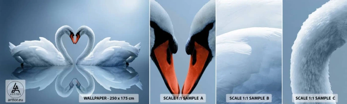 Muestra De Fotomural Standard Eco - Tiempo de amor - cisnes, Amar, Corazón - 100x30 cm