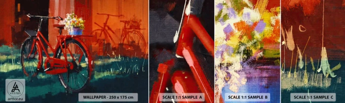 Muestra De Fotomural Standard Eco - Quiero ir en bicicleta - bicicleta antigua, flores en maceta, Viaje - 100x30 cm