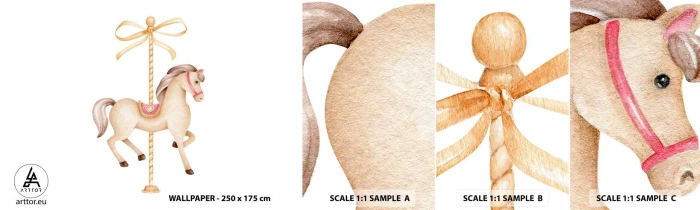 Muestra De Fotomural Standard Eco - Al trote grácil - Caballo, tiovivo, De niña - 100x30 cm