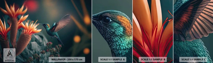 Muestra De Fotomural Standard Eco - Una vida verdaderamente colorida - Pájaro, Exótico, Flor - 100x30 cm