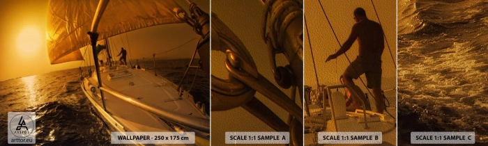 Muestra de fotomural Premium Sand - Atardecer dorado tras un día multicolor - estudios marítimos, Velero, Viajes - 100x30 cm