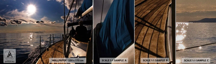 Muestra de fotomural Premium Sand - Bajo las velas hacia el sol - Náutico, Yate, Mar - 100x30 cm