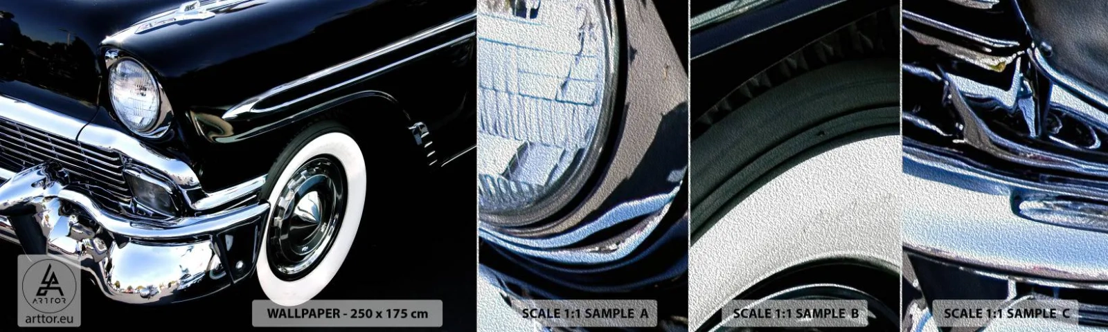 Muestra de fotomural Premium Sand - Clásicos en plata, negro y blanco - Automotor, Auto, en blanco y negro - 100x30 cm