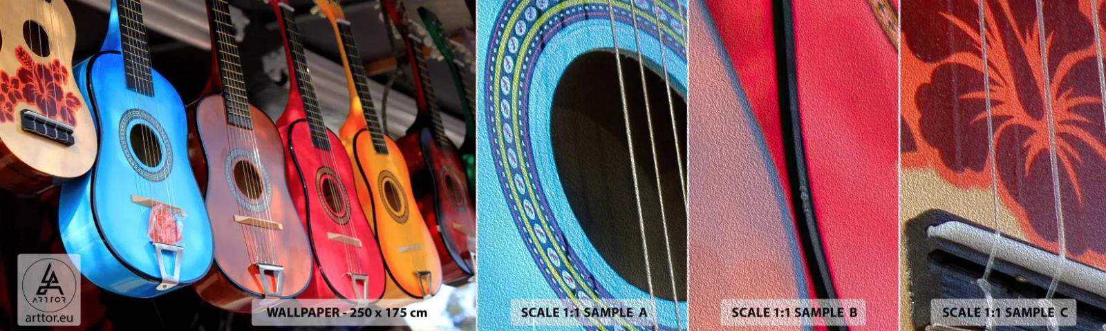 Muestra de fotomural Premium Sand - Estilo latino - Música, Guitarra, Un instrumento musical - 100x30 cm