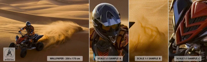 Alta gramaje 290g/m2 junto con una estructura táctil Arena en la superficie del papel pintado, lo convierte en una solución exclusiva y de diseño para cualquier persona que busque decoraciones únicas para interiores. La ventaja del material de grosor excepcional también es una excelente cobertura, que facilita considerablemente la instalación. Estructura fotomural PREMIUM SAND da la impresión de una impresión sobre una estructura fina que se asemeja a arena.