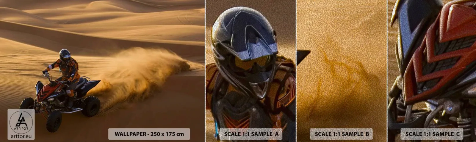 Antes de decidirte por un fondo de pantalla fotográfico de tamaño completo ARENA PREMIUM Le recomendamos que solicite una muestra de material en las siguientes dimensiones:100x30cmGracias a la muestra, podrá comprobar la calidad del material en vivo, ver la reproducción del color, palpar la estructura de la superficie y evaluar el grosor del material, lo que le ayudará a tomar una decisión informada al elegir el mejor papel pintado fotográfico para su interior.