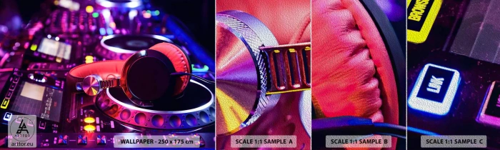 Muestra de fotomural Premium Sand - Antes de que comience la diversión - Música, Estudio de música, Auriculares - 100x30 cm