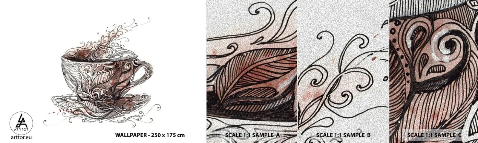 Muestra de fotomural Premium Sand - Té para todo - Abstracción, Taza, Café exprés - 100x30 cm