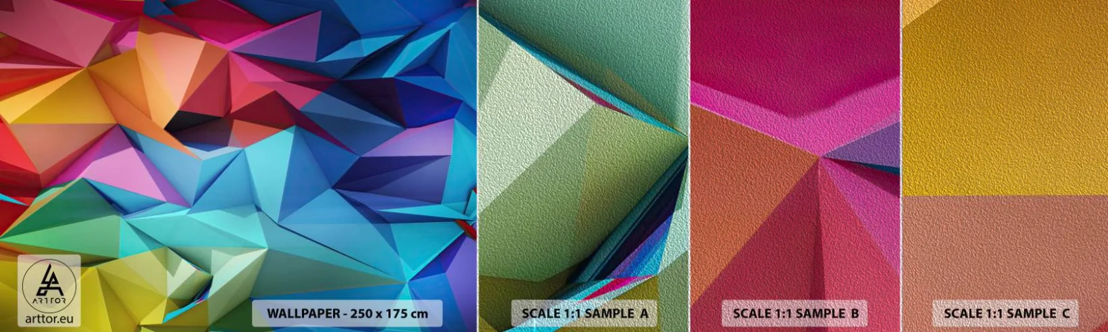 Muestra de fotomural Premium Sand - Origami arco iris - Abstracción, 3D, Gráficos - 100x30 cm