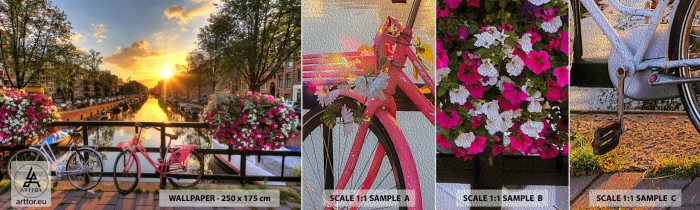 Muestra de fotomural Premium Sand - Mañana de primavera en Ámsterdam - Ciudad, Ámsterdam, Arquitectura - 100x30 cm