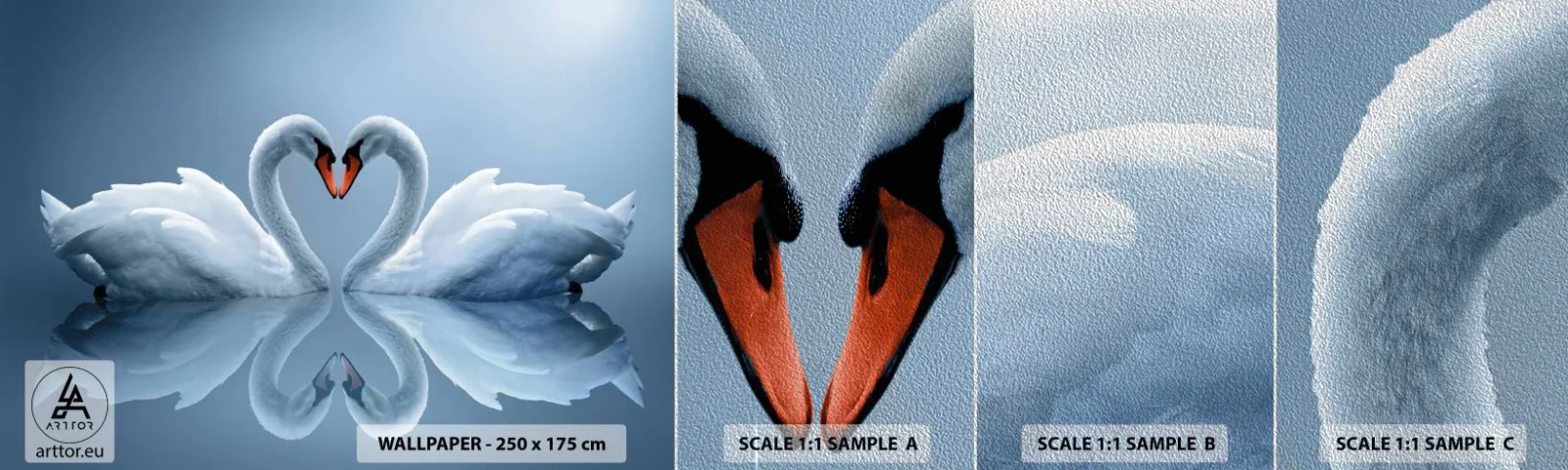 Muestra de fotomural Premium Sand - Tiempo de amor - cisnes, Amar, Corazón - 100x30 cm