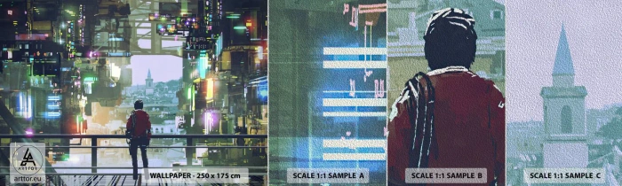 Muestra de fotomural Premium Sand - Dos mundos - Ciudad, Arquitectura, Abstracción - 100x30 cm