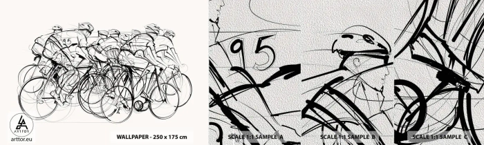 Muestra de fotomural Premium Sand - Juntos como un equipo - Gráficos, Bicicleta, Deporte - 100x30 cm