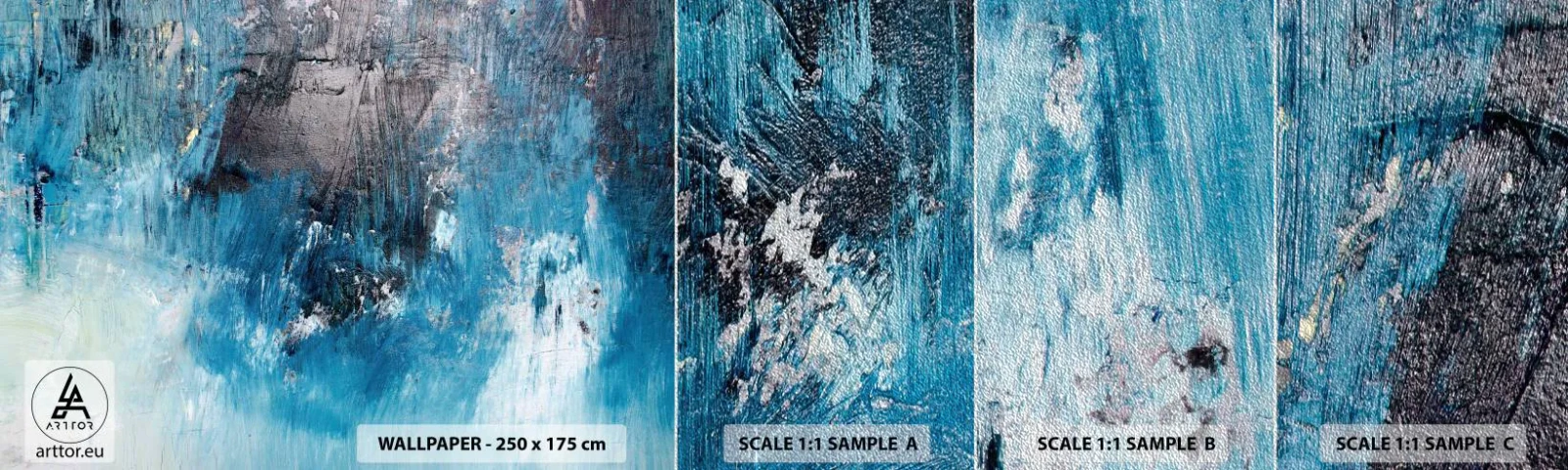 Muestra de fotomural Premium Sand - Rapsodia celeste - Abstracción, Pedazo, Arte Moderno - 100x30 cm
