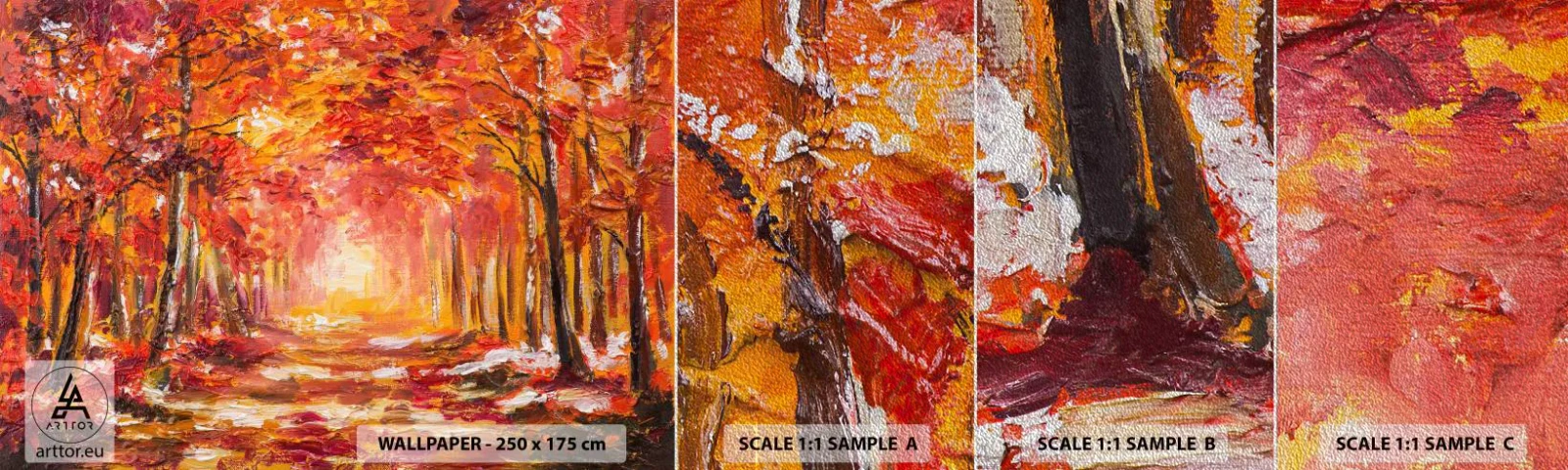 Muestra de fotomural Premium Sand - Bosque de cobre - Otoño, Parque, Paisaje - 100x30 cm