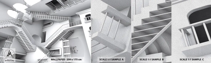Muestra de fotomural Premium Sand - Paradojas del espacio - Abstracción, 3D, Arquitectura - 100x30 cm