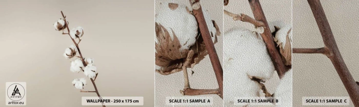 Muestra de fotomural Premium Sand - En la fuente de la suavidad - Flor de algodon, Naturaleza, Algodón - 100x30 cm