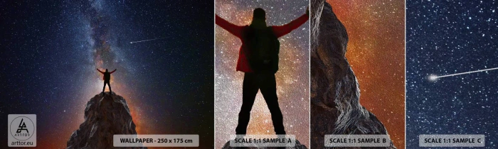 Muestra de fotomural Premium Sand - ¡El poder está conmigo! - Abstracción, Cosmos, Hombre - 100x30 cm