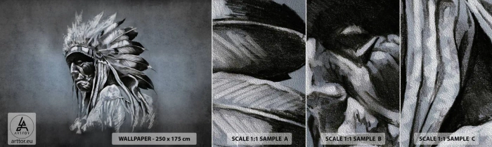 Muestra de fotomural Premium Sand - Regreso a las raíces - indio, Penacho, Hombre - 100x30 cm