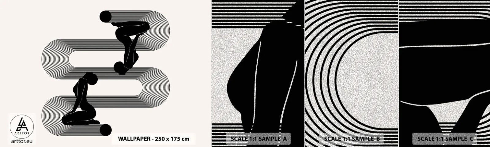 Muestra de fotomural Premium Sand - Simetría sensual - Mujer, Líneas, Meditación - 100x30 cm