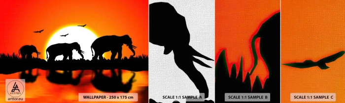 Muestra de fotomural Premium Canvas - La noche es para tomar una copita - animales, África, Elefante - 100x30 cm
