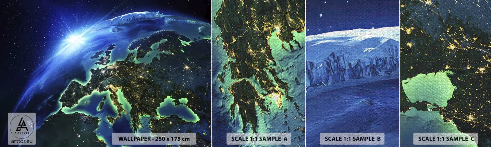 Muestra de fotomural Premium Canvas - Una Europa resplandeciente - Cosmos, Planeta Tierra, Continentes - 100x30 cm