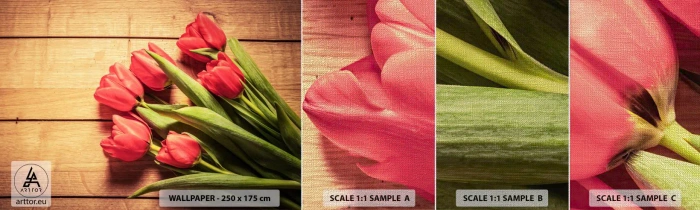 Muestra de fotomural Premium Canvas - Una confesión primaveral - flores, tulipanes, Ramo de flores - 100x30 cm