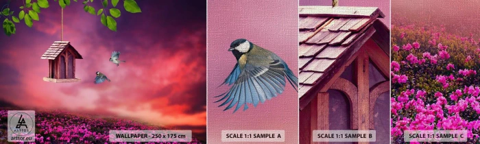 Muestra de fotomural Premium Canvas - Invitación a una cena - Paisaje, flores, Pajarera - 100x30 cm