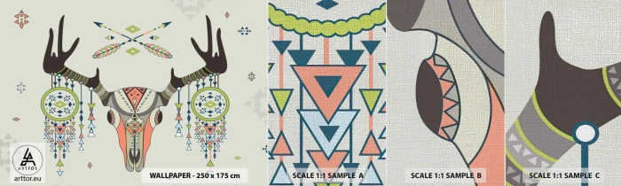 Muestra de fotomural Premium Canvas - Trofeo de cazador indio - Abstracción, Ciervo, bohemia - 100x30 cm