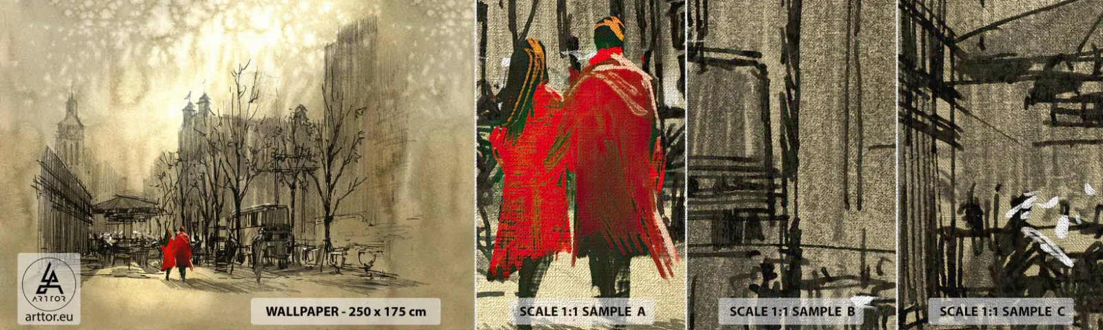 Alta gramaje 290g/m2 junto con una estructura táctil Arena en la superficie del papel pintado, lo convierte en una solución exclusiva y de diseño para cualquier persona que busque decoraciones únicas para interiores. La ventaja del material de grosor excepcional también es una excelente cobertura, que facilita considerablemente la instalación. Estructura fotomural PREMIUM SAND da la impresión de una impresión sobre una estructura fina que se asemeja a arena.