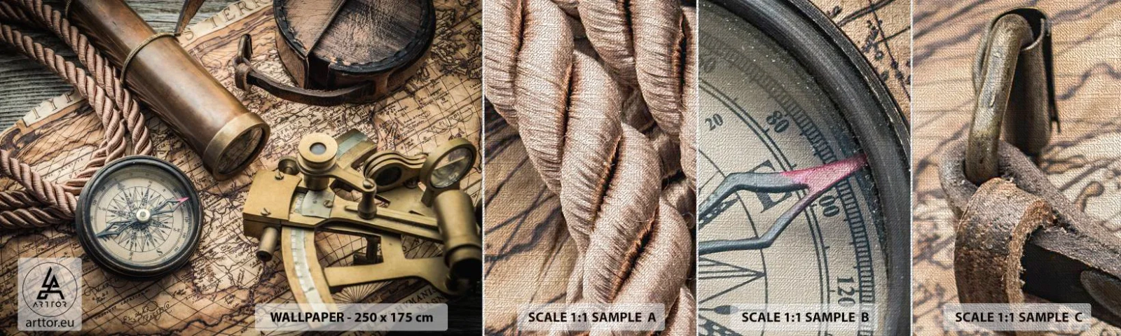 Muestra de fotomural Premium Canvas - Establecer un rumbo - Náutico, Mapa del mundo, Brújula - 100x30 cm