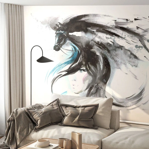 Fotomural Premium Sand - El galope del Príncipe Negro - animales, Caballo, Gráficos - 350x256 cm