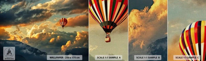 Muestra de fotomural Premium Canvas - Vuelo porque quiero - Abstracción, vuelo en globo, Montañas - 100x30 cm