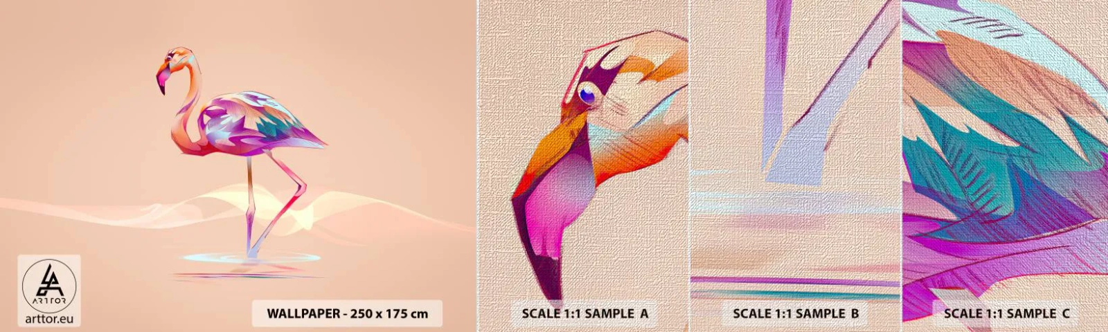 Muestra de fotomural Premium Canvas - Pájaro de las buenas emociones - Flamenco, Pájaro, Abstracción - 100x30 cm