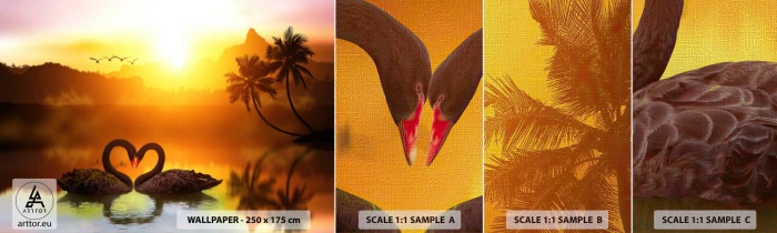 Muestra de fotomural Premium Canvas - Todo a juego - Corazón, cisnes, Palmera de cocos - 100x30 cm