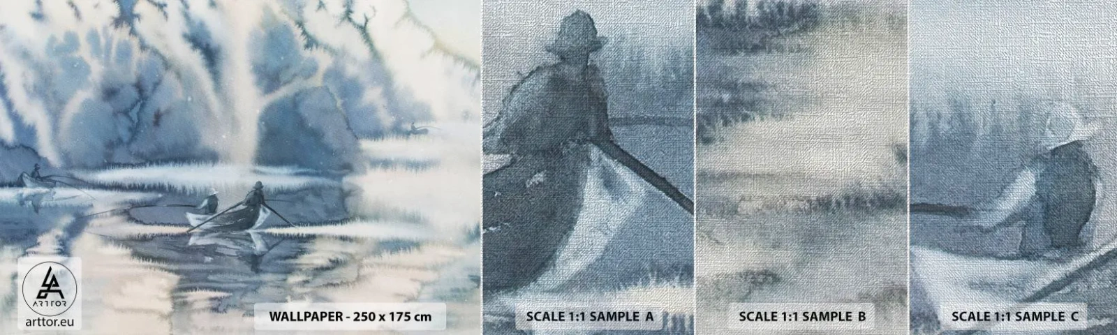 Muestra de fotomural Premium Canvas - Pescadores en su paraíso - Abstracción, Lago, Pesca - 100x30 cm