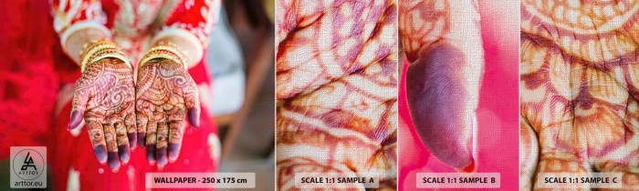 Muestra de fotomural Premium Canvas - Ritual con las manos - manos de mujer, Diseños orientales, India - 100x30 cm