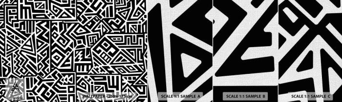Muestra de fotomural Premium Canvas - Composición precolombina - Abstracción, Pedazo, En blanco y negro - 100x30 cm