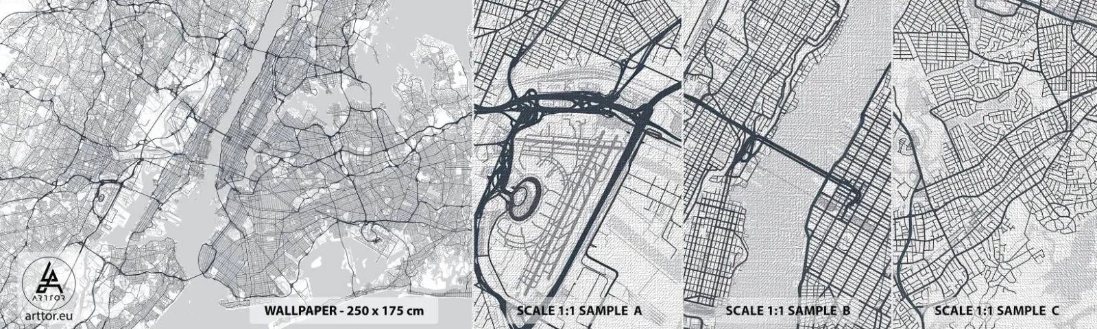 Muestra de fotomural Premium Canvas - Anatomía de una metrópolis - Nueva York, Mapa, manhattan - 100x30 cm