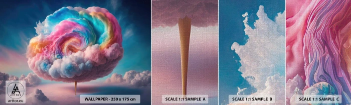 Muestra de fotomural Premium Canvas - El sueño de un parque de atracciones - Pastel, Nubes, Azucarado - 100x30 cm