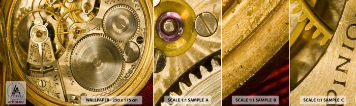 Muestra de fotomural autoadhesivo Deluxe Sticker - Siga el ritmo de los tiempos - Reloj, Mecanismo de reloj, Vintage - 100x30 cm