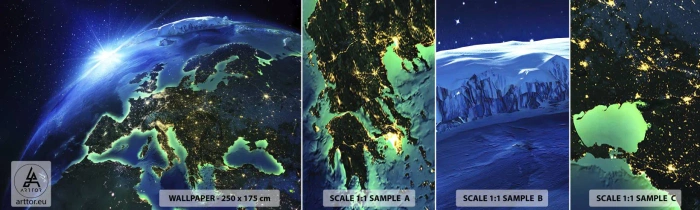 Muestra de fotomural autoadhesivo Deluxe Sticker - Una Europa resplandeciente - Cosmos, Planeta Tierra, Continentes - 100x30 cm