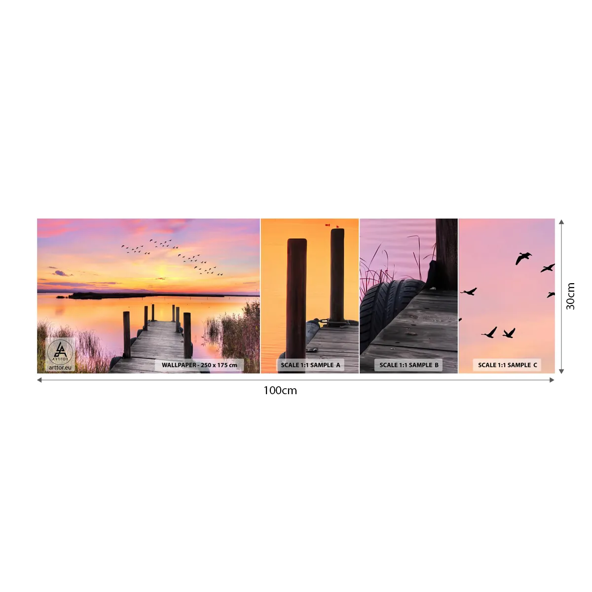 Muestra de fotomural autoadhesivo Deluxe Sticker - Violeta amanecer silencioso - Paisaje, Lago, Naturaleza - 100x30 cm