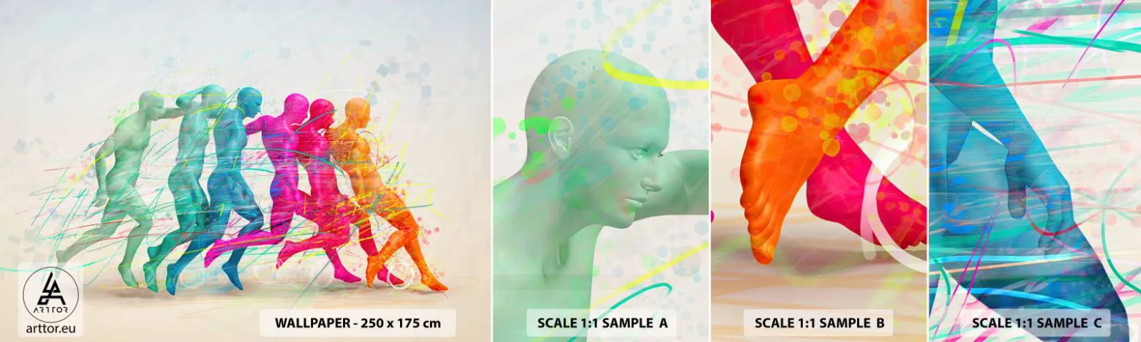Muestra de fotomural autoadhesivo Deluxe Sticker - Armonía del movimiento - Abstracción, Hombre, Deporte - 100x30 cm