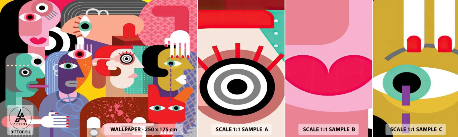 Muestra de fotomural autoadhesivo Deluxe Sticker - Estilo Picasso - Abstracción, Cubismo, Gente - 100x30 cm